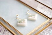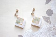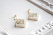 レジンアート スクエアピアス〈緑風に遊ぶ〉