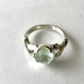 リングのデザインはボタニカルで、大きい2枚の葉にはうっすらとK10を溶かし込んでアクアマリンの冷たい色合いと素敵に調和できる雰囲気に仕上げました。