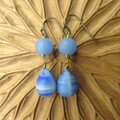 アンティーク ウェディングビーズ 雫 マーブル水色 + 丸玉 ピアス&イヤリング 百世 momotose(西)