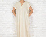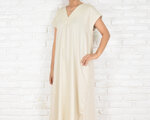 【大きいサイズ】暑い夏にぴったり!涼しげなリネン素材のシンプルなVネックワンピース ナチュラル 生成り オートミール