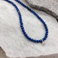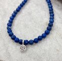 清楚なイメージのラピスラズリに小さなお花のカレンシルバーをペンダントトップに使用しました。