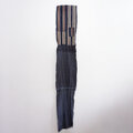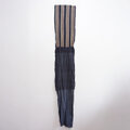 木綿素材の縞模様布が、ラフなハンドステッチでつなぎ合わせており、完璧ではなく人の手の温もりを感じさせます。