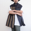 つぎはぎされた襤褸古布の木綿縞模様ストール — ハンドステッチが映えるスカーフにもインテリアにも使えるファブリック