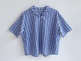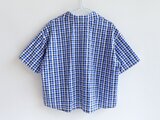 ゆったりシルエットのヘチマカラーTブラウス(播州織サッカー生地・ブルー系チェック柄)受注製作