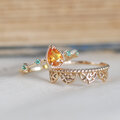 鮮やかなビタミンカラーのサファイアにエメラルドを添えた繊細で華やかな印象のカラーストーンリングです。