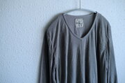 リネン80%、コットン20%のニットインナー。メンズサイズができました。レディースとは生地は共通ですが、異なる点は首周りがVネックであることと、袖が少し長めで9分袖です。(以前7分袖という表記でしたが、形はそのままに名称変更しました。以前ご購入の方はご注意ください)
