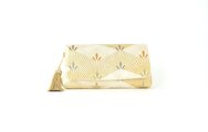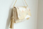 享保元年(1716年)創業の老舗織元「篠屋宗兵衛」謹製の帯から仕立てたバッグは、西陣織の伝統技術と美意識が息づく、格調高く洗練された雰囲気があります。