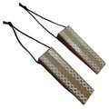 天然杢ナラ無垢材を使用し自然オイル塗装をした木に和風ブラウンの紐をつけています。