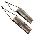 素材は天然杢楢無垢材を使用し自然オイル塗装をした木に和風ブラウンの紐をつけています。