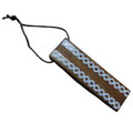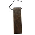 天然杢ナラ無垢材を使用し自然オイル塗装をした木に和風ブラウンの紐をつけています。