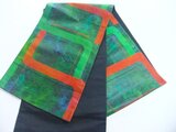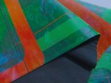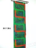 ■新品の帯をリメイクしました。贈り物にも最適です。緑系の幾何学文様でモダンなデザインです。