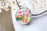 金箔を貼り付けた水色×透明の地に、カトレアを咲かせ金魚を泳がせました。