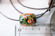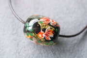 とんぼ玉のサイズは25mm×21mmです。重さは22gです。