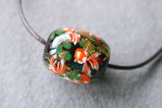 金箔を貼り付けた黒色の地に、金魚を泳がせました。