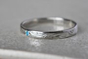 私の作品の中でも人気が高い稲穂をイメージした彫りのリングに一粒天然石を留めて制作を行いました。今回選んだのは夏を感じることができる美しいシーブルーカルセドニー
