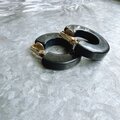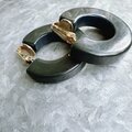 深いグリーンカラーの角度のあるフープで、レトロシックでアーティスティックな雰囲気です。