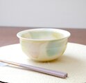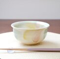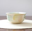 ほんのり生成色のマット釉と、春の色彩を思わせる三色の釉薬。