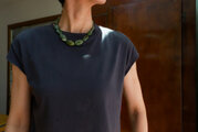 一つ一つ模様が異なる、深い緑色。