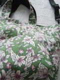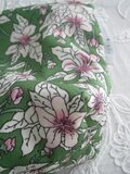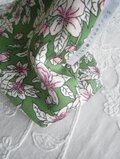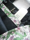 シェニール織りで黒地に映える 花々の色合いが 美しい! 手触りが 優しく 持っている 同じ素材で黒地の花柄の エプロン との コラボも 素敵です。 プチプレゼント 可愛い。
