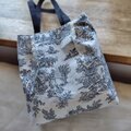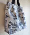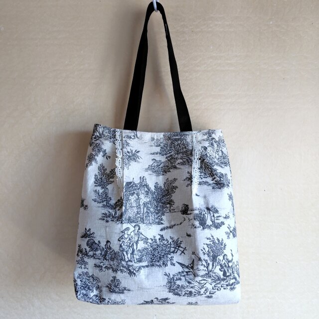 人気のトワルドジュイ田園のグレーを使ったタックバッグです。