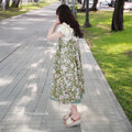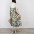 レイヤードボタニカル・グリーンスカラップのキャミワンピース