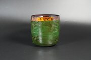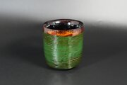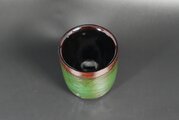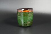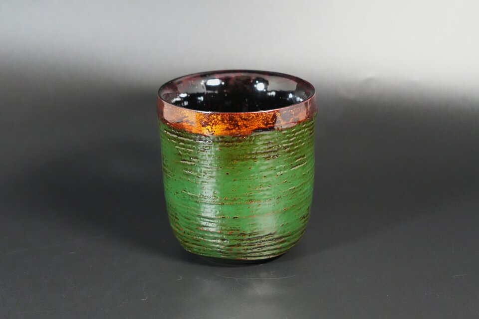 外側 麻紐を巻き黒漆を塗って、上から銅粉を蒔いています。さらに上から緑漆を塗