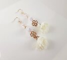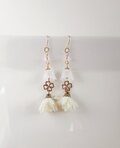 すずらんビーズとフラワータッセルと四葉のクローバーのピアス(ホワイト)