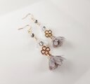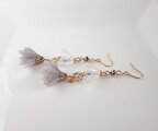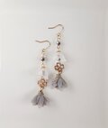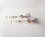 すずらんビーズとフラワータッセルと四葉のクローバーのピアス(大人グレー)