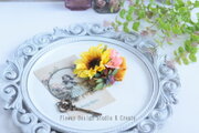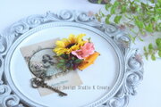 夏のお洒落・発表会に♡ヒマワリとピーチピンクの小花のヘアクリップ ウェディング 発表会 ヘアクリップ 髪飾り ひまわり ヒマワリ