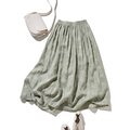 ナチュラルな大人可愛いを叶える 麻100% フラワーフレアスカート ギャザースカート 薄緑色 250706-2