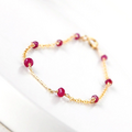 高品質の鮮やかな発色ルビーの小粒のロンデルに仕立て、繊細なゴールドチェーンで繋いだ華奢なブレスレット。