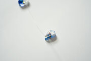 2枚の三角形の板ガラスの間にミルフィオリを挟み込んで焼成したので、色々な表情があります。