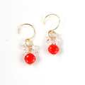 鮮やかな発色が目を惹く、**カーネリアンのパフダイヤモンドカット(マイクロカット)**を使用したピアスです。
