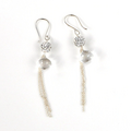 「夏の夜の煌めき」SV925スターリングシルバー/クリスタルクォーツxパヴェボールチェーンピアス