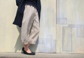 ゆったり目のもんぺパンツを、ベルギーリネン100%の生地で作ってみました。