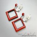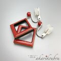正方形のスイングタイプ 漆イヤリング。赤い漆と黒い漆 純金箔ラインで仕上げた漆らしい揺れるイヤリング。中抜きの四角を上部にずらしたこだわりのデザイン