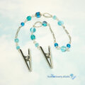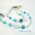 ブルー×ネイビーが混じり合うブレンドカラーのビーズや、虎の目効果が目を惹くキャッツアイガラス、光が透ける瑞々しいブルーのチェコガラスなど、綺麗色のビーズたちを繋いで涼しげに。