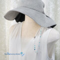 帽子と服の襟を繋ぎ、帽子が風に飛ばされないよう留めて使用します。