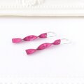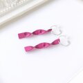 ジュエリーワイヤーで制作したシルバーリングに、ビビッドピンクカラーのスパイラルデザインプレートを揺らした、個性的なフェイクピアス・イヤリング・ノンホールピアス・イヤークリップです