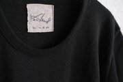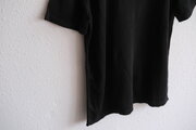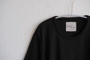 1重のニットで、生地は薄すぎず綺麗な張りと落ち感があり、すっきりとシャープで上品な印象があります。襟ぐりの開き具合や身幅、裾の長さなど、半袖カットソーながらカジュアルすぎず綺麗目で美しいデザインパターン。身体の線を拾わず、すとんと落ちるシルエットです。