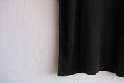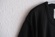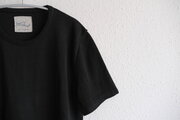 1重のニットで、生地は薄すぎず綺麗な張りと落ち感があり、すっきりとシャープで上品な印象があります。襟ぐりの開き具合や身幅、裾の長さなど、半袖カットソーながらカジュアルすぎず綺麗目で美しいデザインパターン。身体の線を拾わず、すとんと落ちるシルエットです。