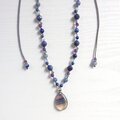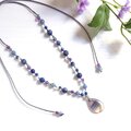 フローライトとブルー系ストーンのフリーサイズネックレス Y-2085
