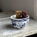 ずっと気になっていたお皿 届きました なんかクリスマスにぴったりな感じ 小ぶりながらも、存在感が凄い さっそく、チョコがけのマロングラッセ 置いてみました テーブルの主役、真ん中に置きたい 微かに少しだけ残った金彩が愛おしいです