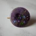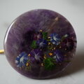 天然石アメジストと朝顔のポニーフック(金沢箔24K入り) 帯留め ブローチ