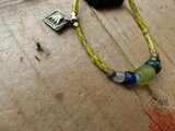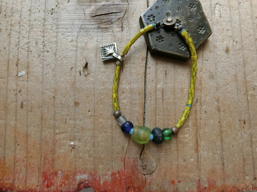 トップにはランダムに寒色系の再生玉やアジアの出土玉や少数民族などのガラスのビーズとエチオピアのメタルビーズを集めてみました。