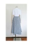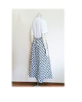 196 1点物 セミギャザーフレアスカート デッドストック浴衣地 ストライプ 白×紺 夏 ウェストゴム