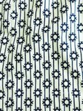 白地に紺のストライプに地図記号のようなユニークな柄、