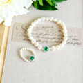 絆を深める癒しの石 グリーンアゲートと淡水パールの指輪 ピンキーリング 5月/6月誕生石