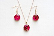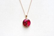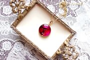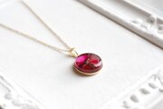 滲んだ二種類の赤とピンクが妖艶な雰囲気を漂わせるペンダント。