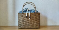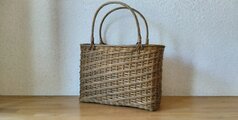 この籐かごバッグは、籐の丸芯を使って編み上げたものです。